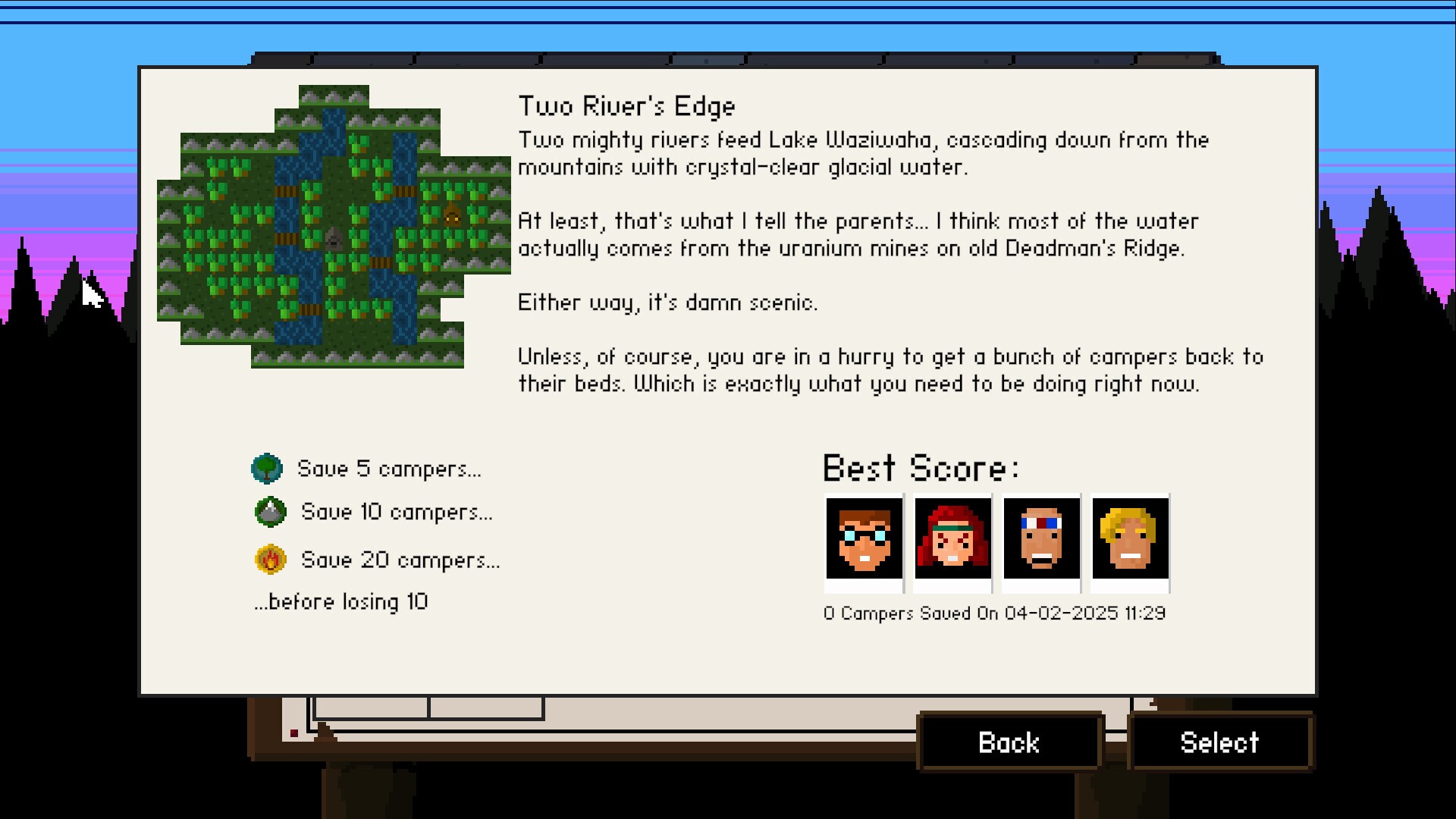 It's another summer at Camp Keepalive, and things are about to get messy. In this turn-based strategy game set in a camp straight out of an 80's horror movie, you are in control of a group of counselors on a mission to save the campers from the horrors that lurk in the night (and the camp from a series of unfortunate wrongful death lawsuits). The campers may be dull-witted and the monsters may be relentless, but with each counselor having their own unique abilities, there's always a way to save the day.Gameplay focuses on strategic decision-making, where player must always think a few turns ahead and where one wrong move can lead to a sudden reduction in staff... Camp Keepalive: Endless Summer contains all the content of the original game with update graphics and UI, as well as new maps, counselors, and monsters. And with Endless Summer mode, you'll never run out of challenges to face.Just because they work for cheap doesn't mean they're not talented. Constantly putting their lives on the line just by showing up, our counselors each have a unique skill to help them - and everyone else - survive the night. Take Dave, for example - a fearless leader. When he can get his mind off his next romantic liaison, he can turn his talents towards keeping the campers in line. With his Gather ability, Dave can pull all nearby campers to him, making it much easier to guide them to safety.Ashley, on the other hand, tends to think the best way to keep the campers safe is to erase as many monsters as possible from existence. Fortunately, as the descendent of a long line of hunters, she is able to do this extremely well. With her Hunt ability, she can eliminate most any monster she targets. Unfortunately, if the monsters get the drop on her, she's just as vulnerable as everybody else.By building a team of four from our staff, you'll have everything you need to get out there, save the campers, and keep our summer camp hopes and dreams alive for one more night.Is it wrong to call something a monster without truly knowing what dwells within its innermost self? Maybe.But not these guys - they are all extremely monstrous and will happily kill almost anything in their path.The Wolfmen, for instance, have an insatiable hunger for fresh camper meat. They scour the woods, constantly searching out the nearest camper they can to make a meal of them. And so help you if you let one into the Mess Hall...The Pleathermasks, on the other hand, clearly have some darker fire driving their malevolent behavior. They pick a single counselor and put all their energy into hunting that one down, ignoring all other victims until they do. It's a single-minded dedication that would be admirable in a lot of careers, but less so for murder.By learning about the various monsters and how they behave, you'll be able to plan your actions to stay as safe and productive as possible. 30 Levels of camping mayhem10 different counselors, each with their own playstyleFull controller supportCustomizable "Endless Summer" mode to give yourself even more manic monster action.