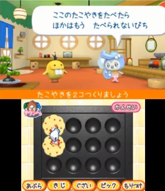 'Cho~ricchi! Tamagotchi no Puchi Puchi Omisecchi' (otherwise known as ちょ~りっち! たまごっち の プチ プチ おみせっち) is a Tamagotchi game developed by Bandai Namco Games for the Nintendo 3DS. It was released only in Japan on April 19th, 2012. It is a 3D remake of the first Corner Shop game, featuring both original and animated characters from the 'Tamagotchi!' series. It is the first out of six 3DS entries. - *Like the other Corner Shop games, gameplay consists of working in shops with a chosen Tamagotchi partner. When players serve a certain number of customers, Princess Tamako will visit and upgrade the shop. The highest status a shop can upgrade to is the royal status. It contains all the same shops (excluding the two combination shops) and the same soundtrack as the original corner shop game. (*Source of Description - 'Tamagotchi Fandom Wiki'; 'Cho~ricchi! Tamagotchi no Puchi Puchi Omisecchi')