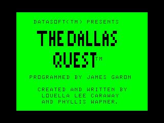 The Dallas Quest is an adventure programmed by Steve Bjork, James Garon and others, and published by Datasoft for the Tandy Color Computer, Commodore 64 computer in 1984. It is based on the television series Dallas. There was also a version for the Apple IIe and Atari 8-bit home computers as well as the TRS-80 Color Computer.