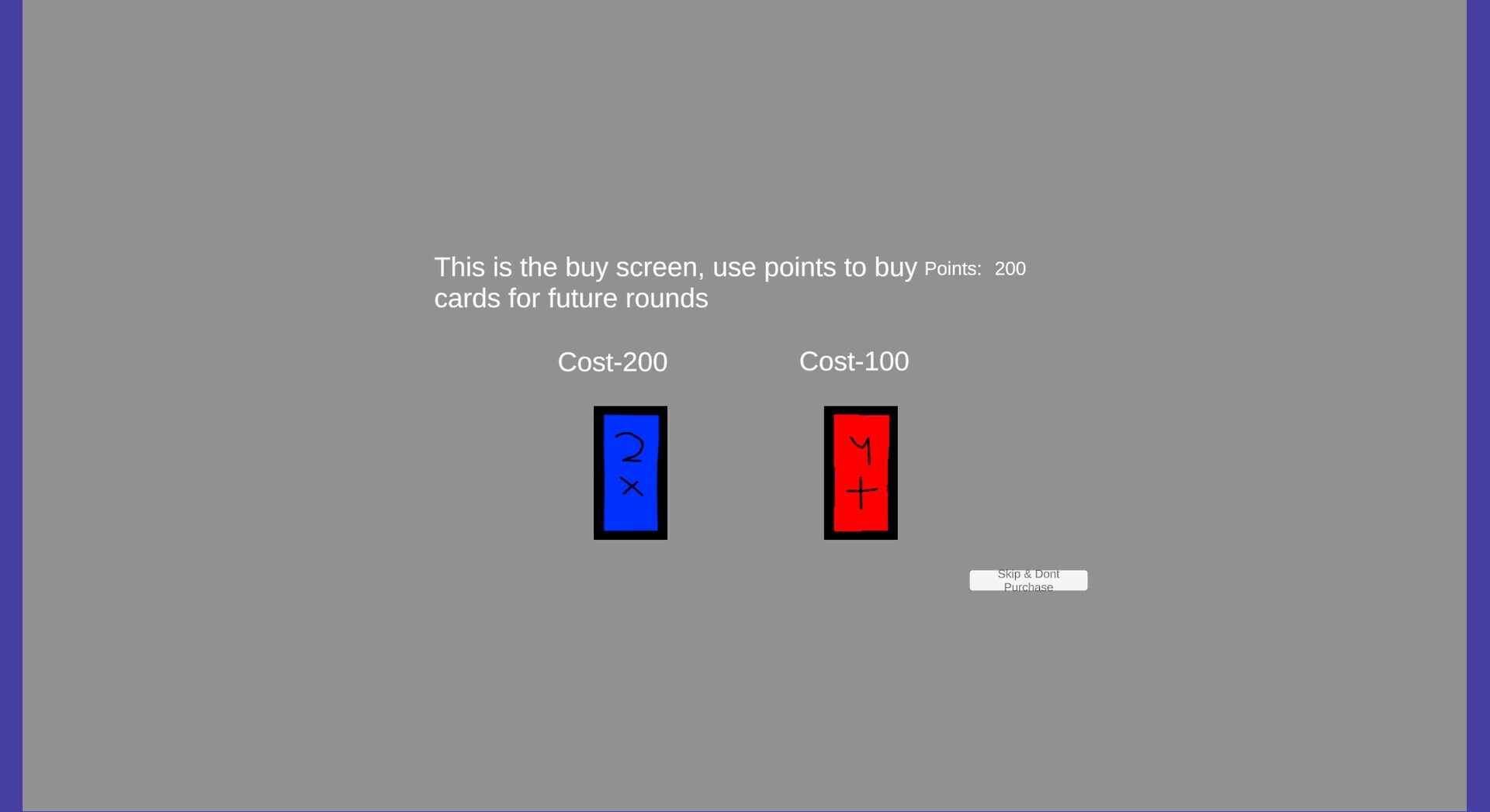 OverviewDionysus is a brand new mix between Pong and.. Playing cards? In this game, you will play a regular game of pong, but with the twist being that you can buy cards to alter your gameplay! For example, if you purchase a plus 4 card, you can add four points to your score, making the game easier to win!DetailsThis game is great for people who want to play competitively with friends or who just want a fun single player game. You will be matched up with PongBot, our custom pong Artificial Unintelligence (Which is like AI but not very smart). So what are you waiting for, go ahead and download already!
