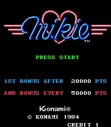 Mikie is a 1984 arcade game produced by Konami. The object of the game is to guide a student named Mikie around the school, classroom, and locker room to collect hearts which make up a letter from his girlfriend Mandy while being chased by various members of the school staff, such as teachers, coaches and cafeteria chefs. To defend himself, the game character can either head-butt or throw basketballs at school members to briefly stun them, while he can push students over with his rear end to find hearts in their desks.