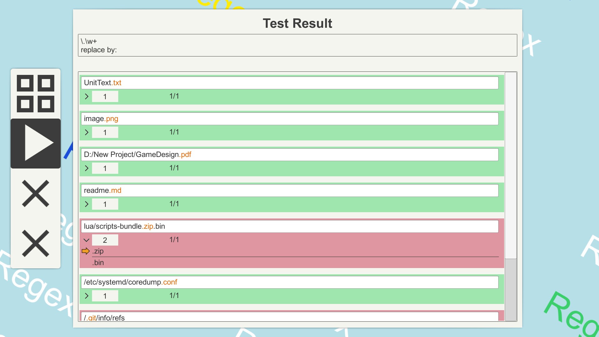 Core GameplayRegular Expressions - an essential skill for programmers - become your puzzle-solving tool.Starting with basic number matching, each level introduces new Regex rules with gradually increasing complexity.30+ Meticulously Designed Levels covering fundamental Regex concepts through:Accessible Design: 95% of the levels require no coding experience to pass perfectly. Players who can program can use their abilities to reduce the difficulty of the red level.Brain Teasers: Regex-themed mini-games between chapters to consolidate skills. The subtle pace of the challenge helps to alleviate the frustration of a failed challenge.Wooden Fish: Tapping the wooden fish increases the accuracy rateRegular Spelling of Words: Move characters to spell words Regular Ninja: Eliminate words that match a given regular expressionPassword Hint: Write a password that meets all the requirements for regular expressionsRegex VS StringFirst Challenge ExampleReal-world Scenario: Identify email addresses in text:Regex Tips:\d matches digits+ indicates "one or more" of preceding element~ o(* ̄▽ ̄*)o That's right! Solution:"Congratulations! You've cleared the toughest level in Chapter 2!"(Quick Flip Book)Web Crawling SimulationChapter 4 Challenge: Extract HTML links from tags: So smart! Advanced Solution: ]*?href\s*=\s*[\"\']?(? [^\"\']+)[\"\']?[^>]*?>( ˘•ω•˘ ) What? Not yet?Keep playing! The early levels will systematically build your skills to conquer advanced challenges.(Players who can solve this problem should have studied regular expressions. The first 3 chapters are mainly for beginners, so please skip the level on your own according to your ability.)Difficulty SystemGreen Time: 1-2 minGoal: Learn individual Regex symbolsBlue Time: 3-5 minGoal: Combine 3 symbols or fewerPurple Time: 5-20 minGoal: Solve real-world problemsRed Time: 30+ minGoal: Tackle complex pattern analysis Chapters 1-3: Green/Blue levelsChapter 4+: Purple/Red challengesAI assistance recommended for stuck moments.~~Red levels: Where "simple" means 2 hours of glorious debugging~~