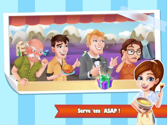 Time to release the chef inside you… Rising Super Chef is a delicious blend of frantic mobile Kitchen & Cooking and Restaurant empire building. Rising Super Chef – kitchen and cooking game is an awesome cooking serve arcade. It is an addicting time management cooking game that features endless play. Whatever you are doing, if you have time to kill and lightening rod focus, you will definitely love this mobile kitchen Restaurant game :) Join Emma in her food truck cooking adventure, to be the Rising Super Chef is a long hilarious way…Roll up your sleeves for breakfast, lunch, dinner shifts because Emma needs your help. By providing speedy services and delicious food, please customers and make foodie paradise. You are hired in a chain Restaurant to serve your patrons by cooking the most Delicious and Unique dished such as Scramble Egg, Pizza, Hotdog, Hamburger....Dash it! Provide Speedy service and please customers with the most ever finding Delicious and Unique food items. Dispense the dishes with your best recipes of your kitchen. Never forget the Recipes. Remembering Recipe will provide speedy serving system to your clients. Join Emma , help when customer appears in your mobile kitchen restaurant. Here’s the scoop, its time to make Fantastic, Delicious and Unique dishes to serve your customer with the best plunging recipe of your mobile kitchen!!! Take the crazy fate of mobile restaurant in your hands. Keep your customers happy by prepping everything from Burgers, Fries, Pizza; Take orders, tap and slide to seat customers, serve piping hot dishes and collect tips to upgrade your mobile Kitchen Restaurants! Rising Super Chef – kitchen and cooking game is a playful cooking foodie paradise. This keeps you on your toe, time you as you make different dishes with different Recipes! Get ready for the food making and serving the most Delicious and Unique dishes. For a limited span you should make the right dishes in time to serve the customers happy. Rising Super Chef – kitchen and cooking game gives addiction to an awesome franchise and will definitely spirit you away. Never miss the best Rising Super Chef – kitchen and cooking game, if you want a substantial entertainment. Easy and addictive will make your adrenaline going. Please like us on Facebook at https://www.facebook.com/risingstarchef -Game Features- • High performance on every iOS device. Make sure you'll have a smooth playing experience. • Connect with Facebook and play with your friends, and your progress will be automatically synchronized. You can login with any device and synchronize your progress. • "Everyplay" Video Replays watching and sharing of each level that you'll find more fun in the video community. • Learn to cook hundreds of dishes based on real recipes. • More than 130 levels, and MORE LEVELS with variant new dishes are coming soon! • 3 major modes of timing, minimal earning and maximal customers failed to serve. • Use Premium Ingredients to make your dishes more valuable. • Variant types of customers, generous, friendly, irritable, picky...... • Upgrade your kitchen appliances to speed up the cooking progress and get higher scores!