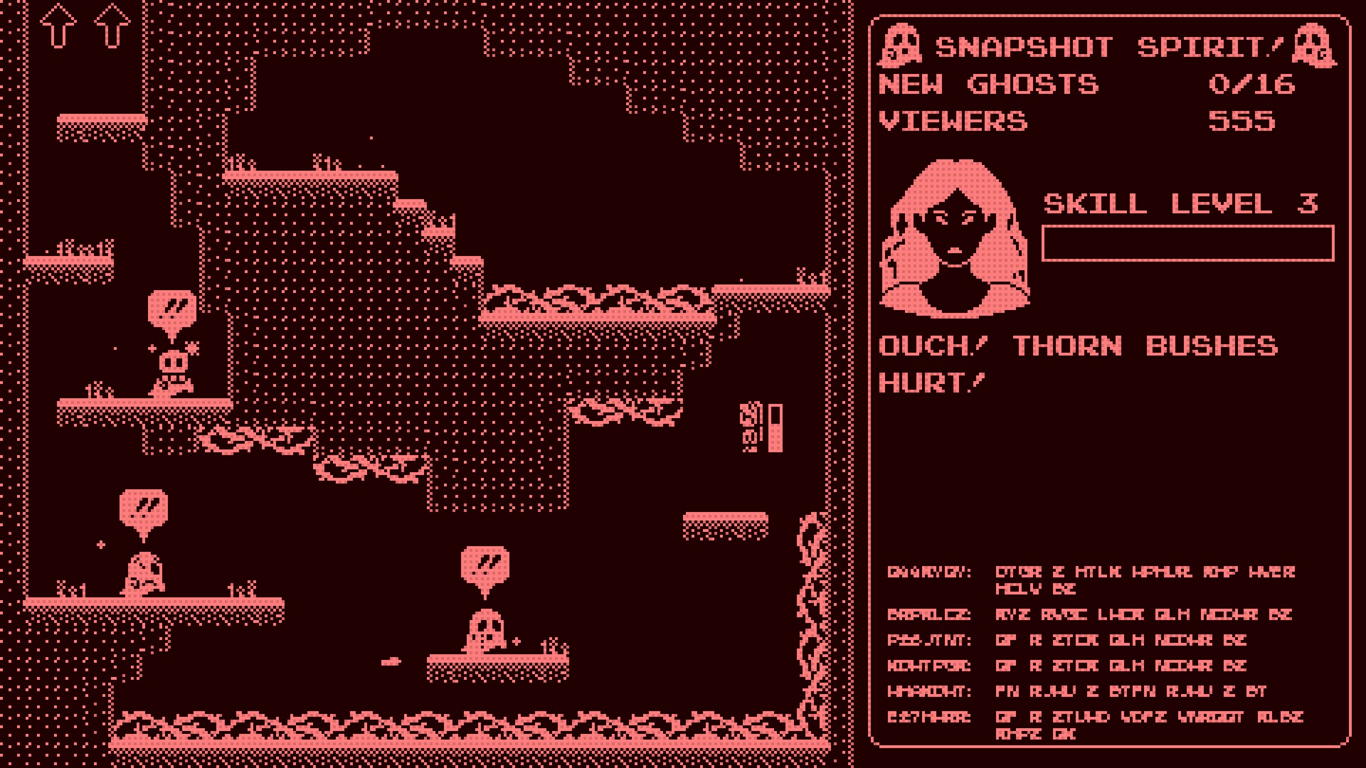 In Snapshot Spirit Live! you play as a jetpack-flying photographer named Katie as she hunts ghosts in this educational photography game with minimalist 1-bit-inspired graphics and a Game Boy-inspired soundtrack. Play as Katie as she flies around a haunted forest to find and photograph a wide variety of cute ghosts and build her photo portfolio. Katie streams her photography and jetpack-flying adventures to viewers, and she comments on what happens each day! As she gets better at photography, more and more camera features unlock, allowing players to learn about basic photography principles such as the exposure triangle, ISO, aperture, shutter speed, and focus.