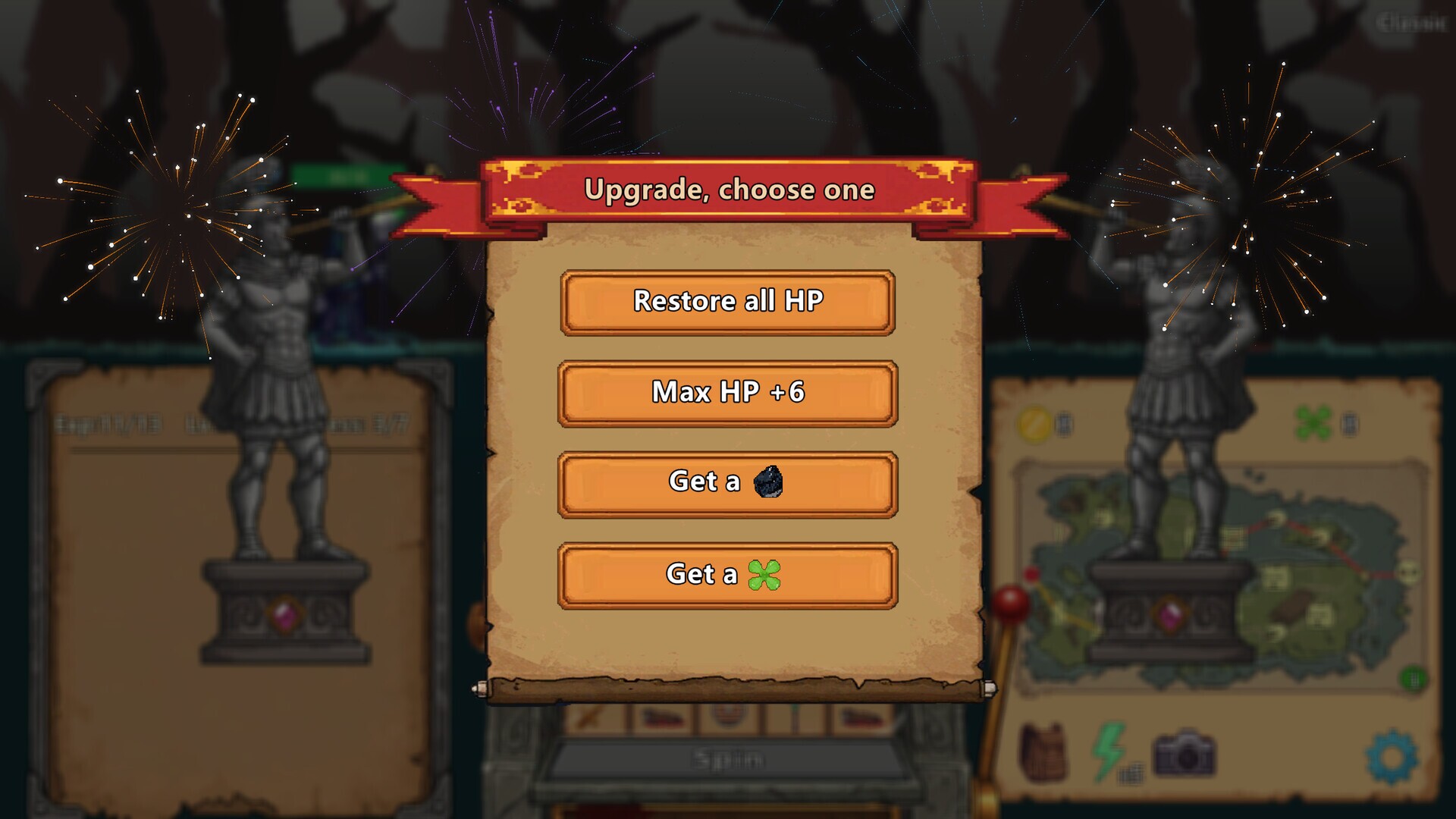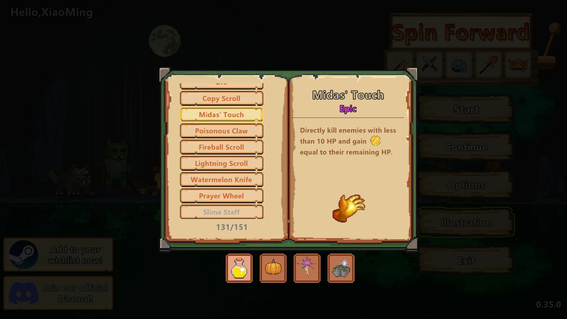 "Spin Foward" is a relaxing and casual roguelike slot-building game. It combines elements from Lucky Landlord and Slay the Spire, simplifying the mechanics. In the game, players only need to press the spacebar to experience exponential growth in game stats, delivering an exhilarating sensation of conquering everything in seconds. While pay-to-win games may require thousands or tens of thousands of dollars for the thrill of drawing an orange card, here you can feel that excitement by defeating just a few monsters.Getting bored easily? Not at all. There are over 200 (in the demo phase) bizarre and unique runes and relics for you to mix and explore. You can use a helmet rune to stun monsters, use a shoe rune to kick them away, turn monsters into sheep with a staff, freeze them with a frozen staff, summon slimes, poison your weapons, and even get an automatic robot to turn the game into an idle experience. There's also a catapult, daggers, throwing knives, bows, dice, potions... Still not enough? The game even includes an 8-bit gaming system where you can collect cartridges to play mini-games.Features:Collect and combine symbols and relics with various abilities. Defeat monsters and bosses along the adventure path.Click Spin to start the slot machine and randomly generate combinations of symbols. Combined with different relics, this will produce varying attack and defense outcomes.Use specific symbols to create special effects on enemies. For example, the Shepherd's Staff can turn a target enemy into a sheep.Explore a new map every time, with different symbols and relics, enemies and events, and and surprises along the way.