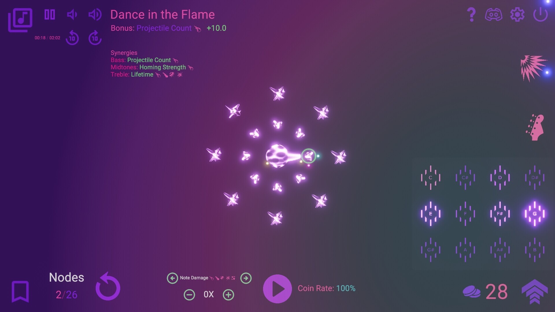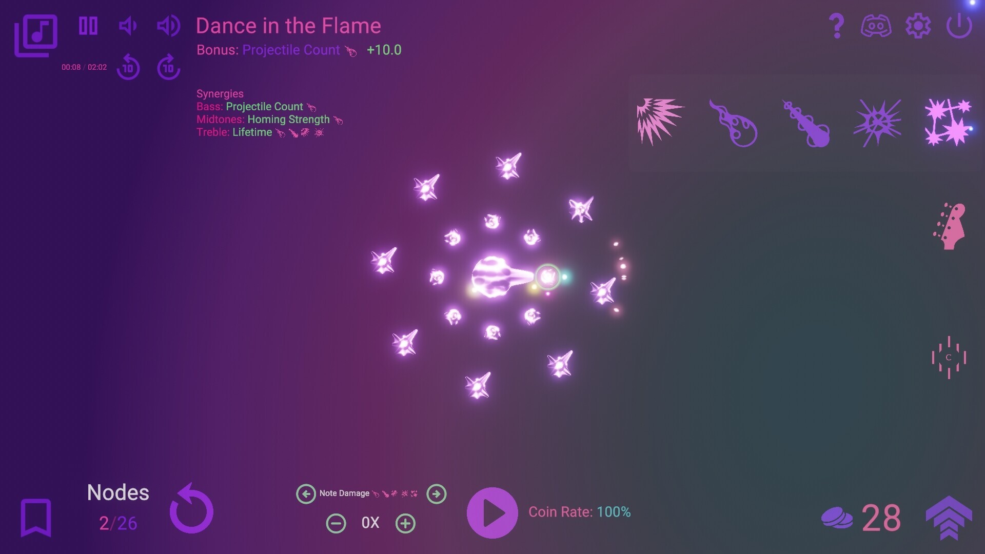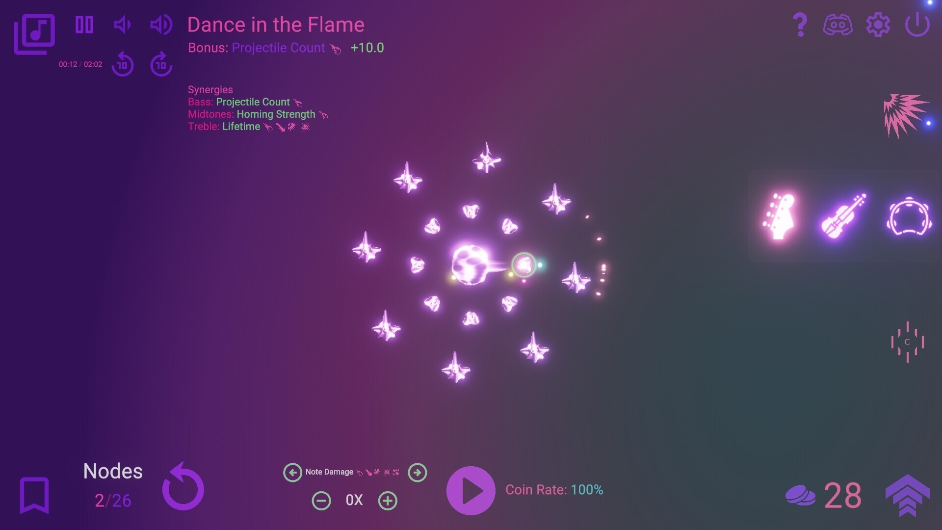 Symphorix redefines the Roguelite Survivor experience by blending soothing, ambient aesthetics with deep, strategic roguelite mechanics. In this universe, it's not about frantic reactions or memorizing every beat – the music unfolds naturally, guiding you through an immersive soundscape filled with mesmerizing tracks. Ambient, Music-Infused Strategy: In Symphorix, the song plays out as it will. Instead of racing against time, your focus is on pre-planning the perfect build. Imagine knowing that the c# notes dominate your track – your task is to configure your Core to unleash a barrage of missiles at those moments, without having to chase every beat.Relaxed Intensity & Deep Customization: Enjoy a gameplay experience that marries the serenity of ambient music with the depth of a survivorlike roguelite. Customize your Core’s nodes and assign distinct attack types to specific musical notes, letting you shape the battlefield before the chaos even begins.Procedurally Generated, Yet Predictable by Design: While the enemies and bosses emerge from the music’s natural rhythm, their patterns are set by the song’s structure. This means you can study the frequency of key notes – like the recurring c# – and tailor your strategy accordingly.Evolving Tactics & Synergies: Discover powerful combinations and synergies as your Core’s abilities interact with the musical landscape. With each track, the game invites you to premeditate your moves, turning the experience into a thoughtful, methodical dance of strategy and anticipation.Custom Tracks & Live Mode: With over 150 original tracks or the option to import your own MP3s, every run offers a unique ambient journey. The game transforms your chosen music into a dynamic, interactive canvas where planning and creativity pave the way to survival.Core Configuration & Pre-Planning: Before the battle begins, design your Core by assigning notes to its nodes. Whether you choose explosive projectiles or focused beams, the decision is yours – and it’s based on understanding your song's structure, not reacting to each beat.Serene Yet Challenging Encounters: Face off against procedurally generated enemies and uniquely crafted bosses whose behaviors mirror the flow of the music. Every encounter is a testament to your strategic foresight rather than reflex-driven chaos.Progressive, Rewarding Gameplay: Earn upgrades and unlock new abilities as you progress, further refining your build for each song. The challenge is to anticipate, adapt, and create a Core that perfectly aligns with the musical journey.Step into a world where the music is both a backdrop and a blueprint. In Symphorix, every track is a canvas for your strategic genius – a place where you craft your destiny through thoughtful preparation and tactical precision. Embrace the ambient beauty, plan your moves, and let the music guide you to victory.STRATEGIZE YOUR CORE. EMBRACE THE AMBIENCE. MASTER SYMPHORIX!