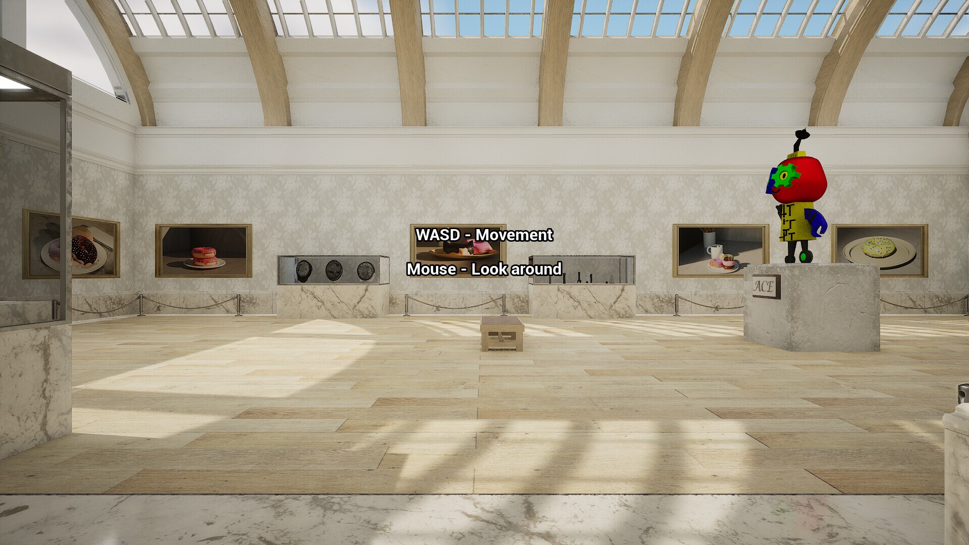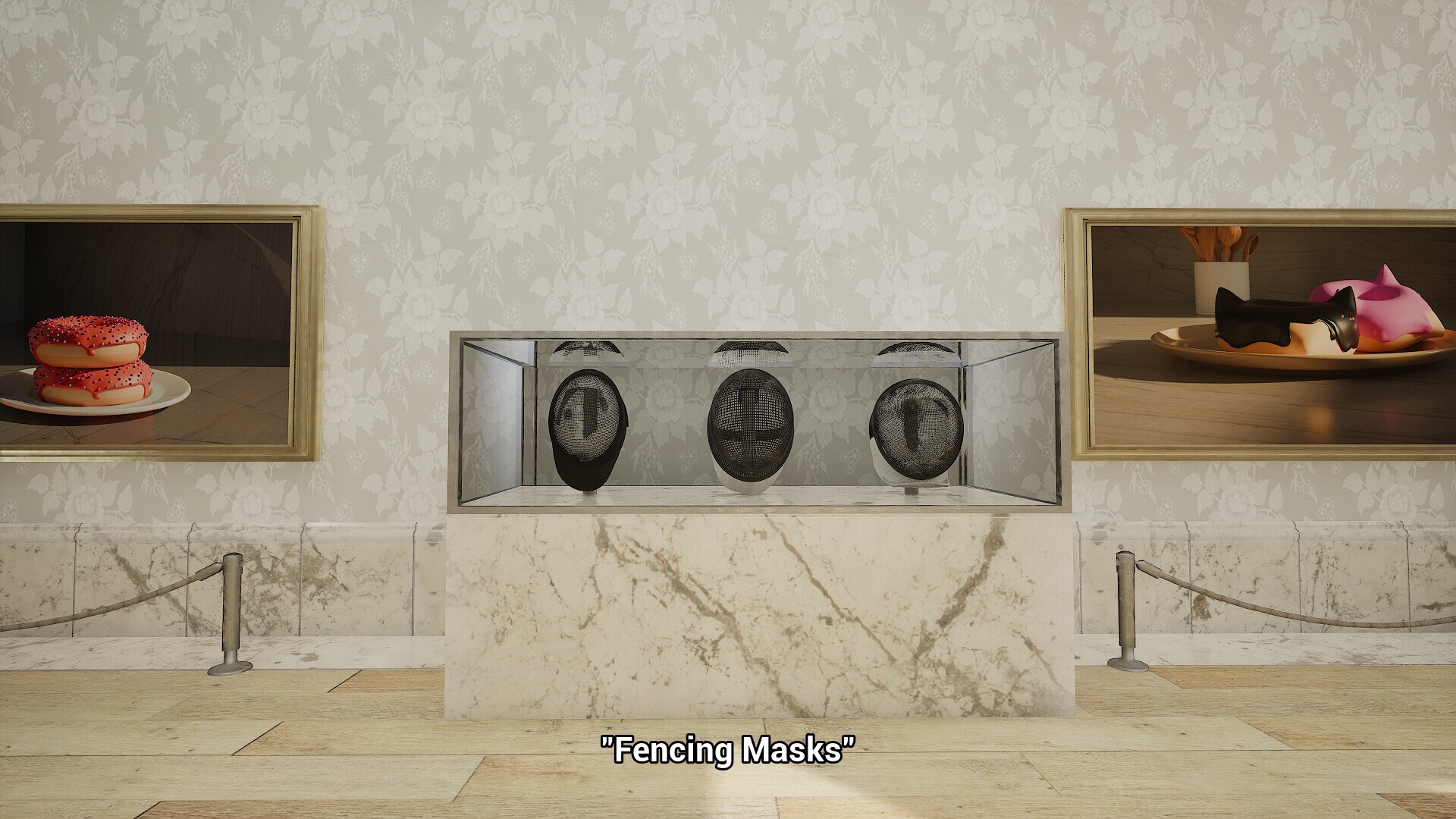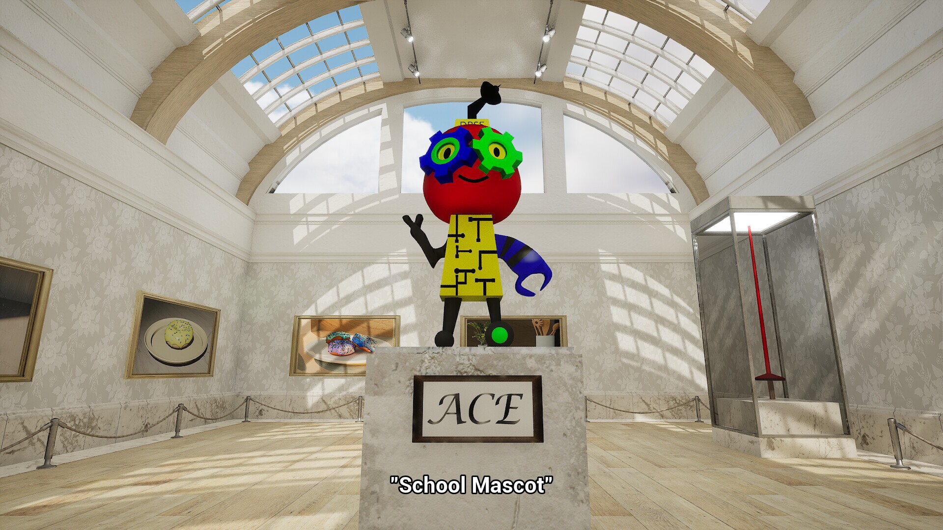 The showcase of student donuts and other 3d models from their stemmersion class.Walk through an art gallery filled with their donut renders from the blender donut tutorial and other 3d models inspired by the other half of their stemmersion... fencing!Come back every year to see the updated museum and new rooms that will be filled with new student creations.In this walking sim you can:walk up to "paintings" to see their titleadmire the variety of 3d models created by studentsListen to fancy music as you saunter around the museum
