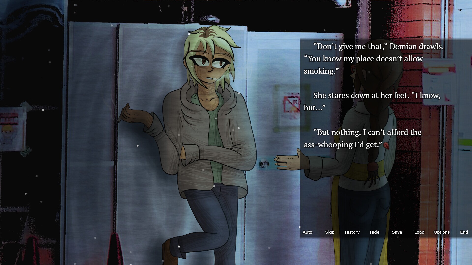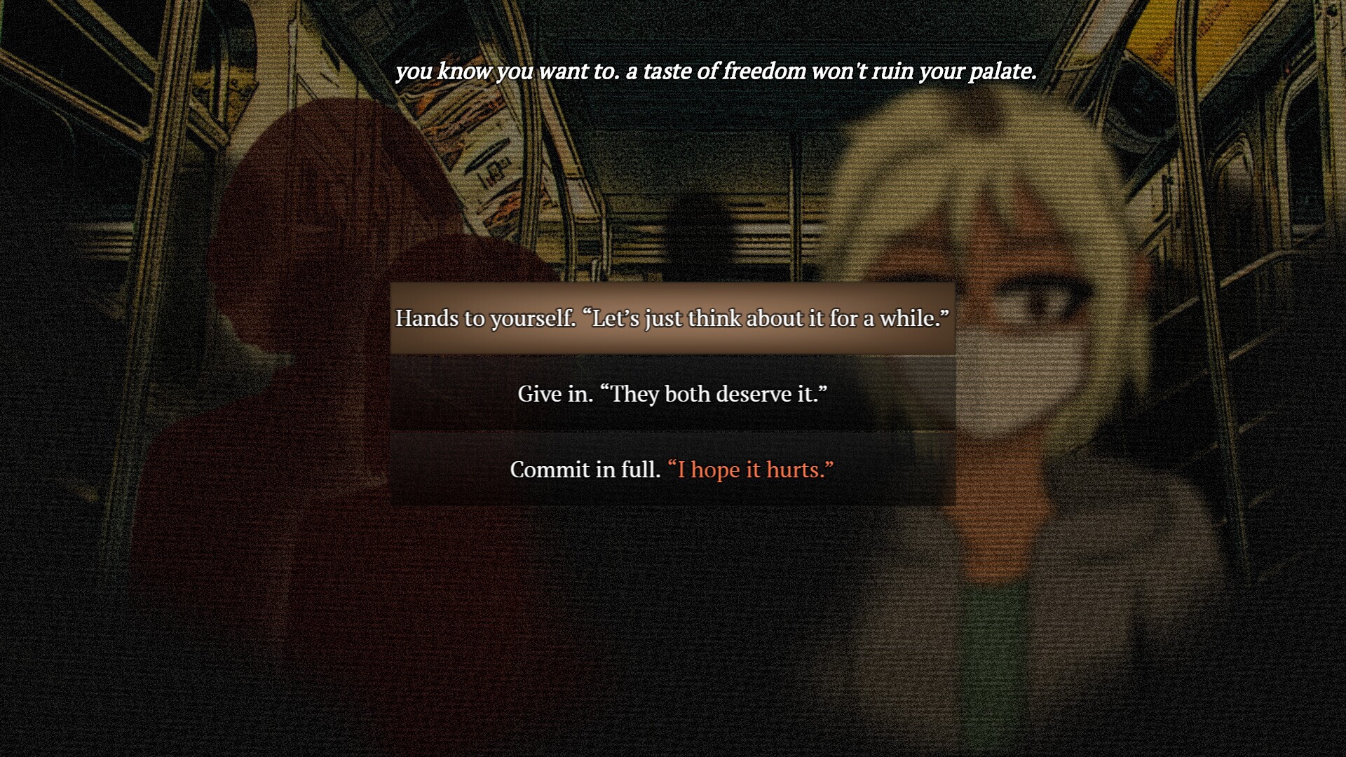 Veins Like Tapeworms is a slow-burn, psychological horror visual novel about disgust, snuffed-out dreams, and the desire to be loved. When life becomes a monotonous cycle, it's not hard to grasp how someone could be pushed to the brink of violence, all in the name of feeling free. It becomes even more understandable if that person never even began to live, before being shoved out of the nest. With no gentle way out, the only chance to start anew is to snap chains and splatter organs. Putting it that way, it was only a matter of time until Demian gave in. We can't prevent a tragedy, but we can cause their descent. ✦ A defined protagonist, Demian Zhao!Take control of Demian Zhao, a 22 year old living on the razor-thin edge between murder and mental break. After moving to Kingsfield Beach in hopes of finding a place to call home, all of their motivation to get out and live a better life has been sapped away. Now, they survive paycheck-to-paycheck, working their miserable job at the Restful Night Motel as a cleaner.As they become host to an ancient flower god, though, Demian will soon learn that not all is hopeless with their life; they just need to set themself free. If you let them, their humanity will slip away in exchange for their freedom.The story revolves around Demian's own dreams, fears, desires, and bloodthirsty hatred. Every choice a player can make is a thought running through their mind at that exact moment; no action is out of character.Will you help them pluck the worms of cruelty from their brain, or indulge in their most violent fantasies? ✦ A slow-burn, dread-filled story told in over 100,000+ words and 8 chapters!Taking place in the fictional city of Kingsfield Beach, Nevada, Veins Like Tapeworms will present a chilling world for readers to immerse themselves in. Kingsfield is a concrete paradise, where dreams die under gaudy casinos and neon signs. Poor little Demian’s already been swallowed whole by the city, but that doesn’t mean they can’t crawl out of its festering underbelly. All they need is a little push.Even with a slow-burn narrative told in 8 chapters and 100,000 words, readers will be begging for more by the time the story is over.The story of Veins Like Tapeworms is heavily dependent on choices made through a playthrough. The way Demian perceives the words and actions of those around them are influenced by the thoughts a player has allowed into their head - a heartwarming conversation in one path can become a harrowing monologue of bloodlust in another.✦ 6 endings to discover!With 2 early endings and 4 full endings, the way Veins Like Tapeworms comes to a close is sure to shock or unnerve a player. Can you save Demian from their own violent desires, or will you let them finally give in to the rage that's boiled in their heart for years?✦ 5 unlockable Bonus Scenes!Curious about the damage left in your wake? 5/6 endings come with a Bonus Scene to read after the credits roll, taken from another's perspective of the aftermath! Each Bonus Scene is 100% optional, of course - though they can be accessed from the title screen at any time, they're not necessary to get the full picture.✦ Over 250+ beautiful hand-drawn illustrations!Written, programmed and drawn entirely by one person, Veins Like Tapeworms has over 250 full-screen illustrations for a player to discover. A gallery in the title screen ensures players can revisit any piece they may have enjoyed, or see what images they haven't unlocked yet.✦ Immersive ambience!Tired of visual novels that simply loop one song on repeat, with no regard for sound effects to coordinate with in-game events? Look no further with Veins Like Tapeworms; the game's ambience has been meticulously crafted for utmost immersion, and practically begs for headphones.